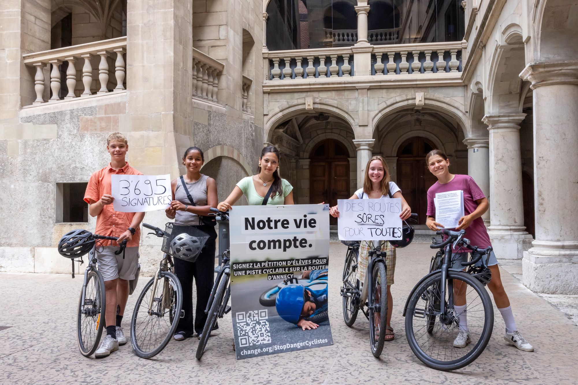 Communiqué de presse dépôt de la pétition d'élèves pour une piste cyclable sur la route d'Annecy